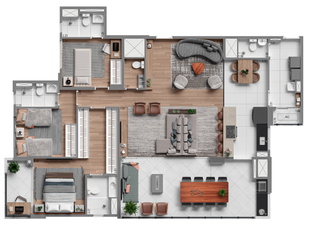 Acabamentos de alto padrão: Materiais de primeira linha e um design impecável garantem um ambiente sofisticado e acolhedor.
