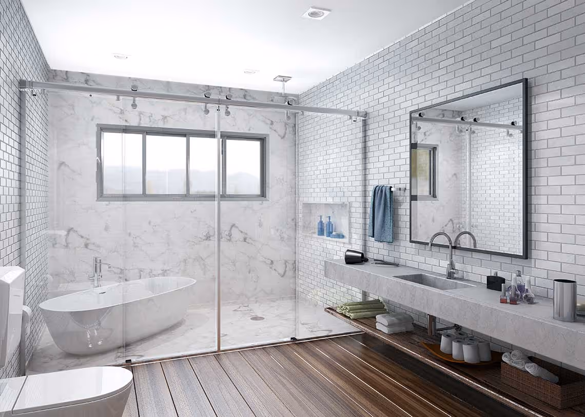 Se houver dúvida na hora da escolha, aposte no incolor pois ele ajuda a ampliar o espaço, além de combinar com qualquer tipo de revestimento e louças. Como alternativa, recomendamos o fosco ou jateado, que confere privacidade na hora do banho.