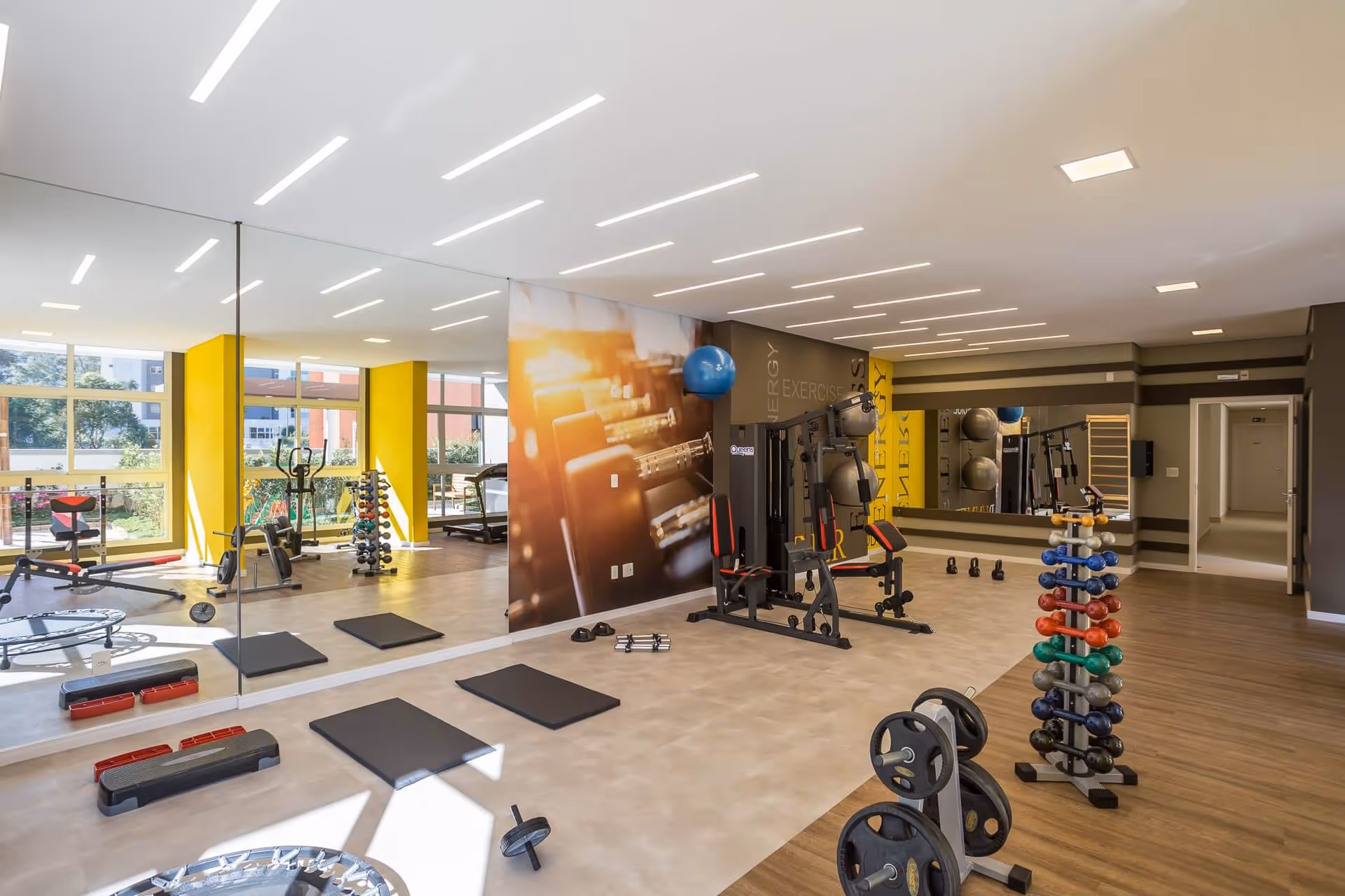 A estrutura ainda conta com solarium, fitness externo, playground, piscina, salão de jogos, espaço gourmet (ideal para receber convidados), sauna e brinquedoteca. Ou seja, uma completa estrutura de lazer para desfrutar em família: dá para observar os filhos brincarem com segurança, marcar um churrasco com os amigos, manter a forma sem precisar registrar-se em academia, aliviar o calor de um dia de verão com um mergulho ou simplesmente contemplar a natureza.