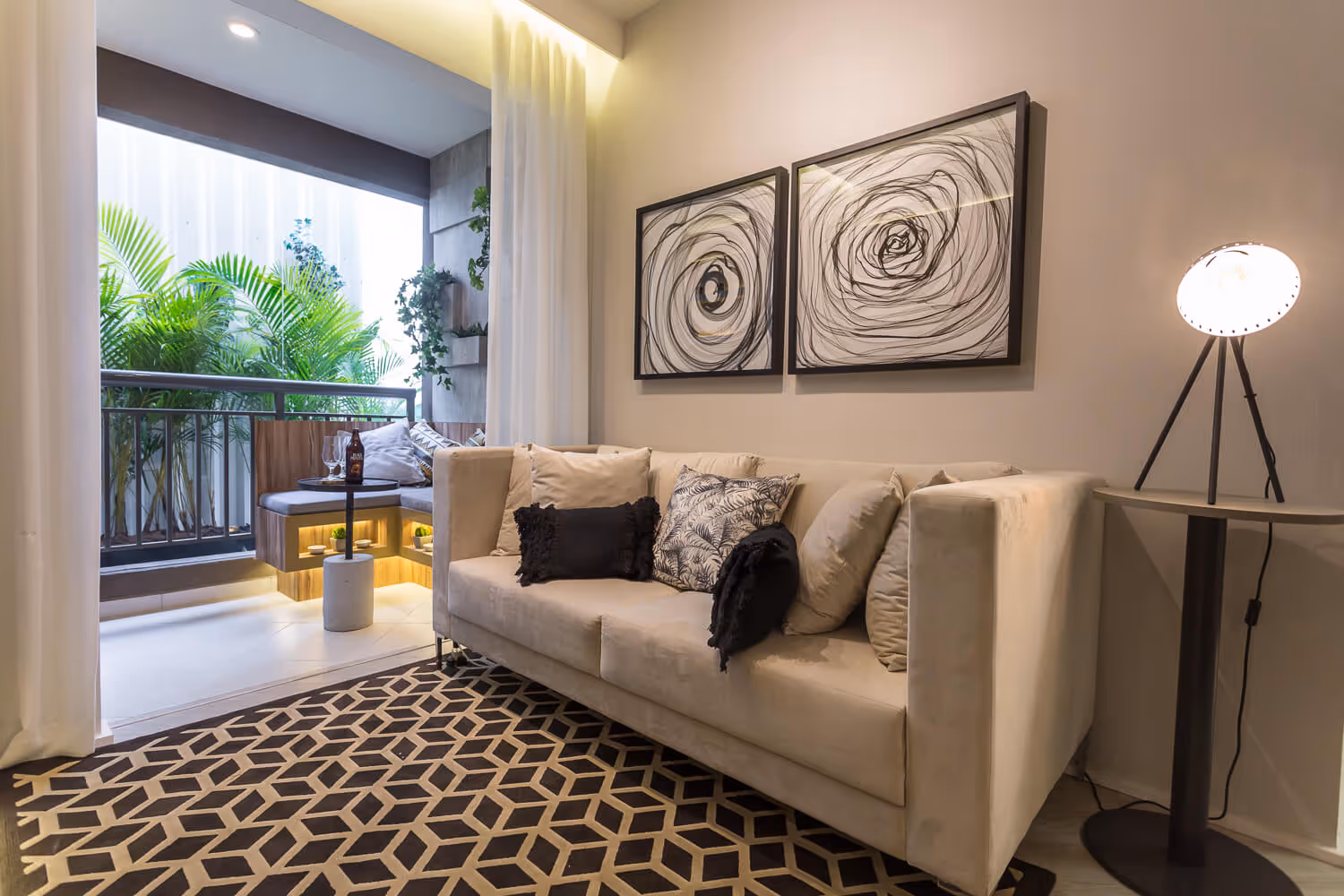 Apartamentos compactos não dão muita margem para manobra. Em muitos casos, o espaço comporta um estofado de dois lugares somente. Nesse caso, talvez seja possível compor com pufes para aumentar a capacidade de carga do ambiente.
