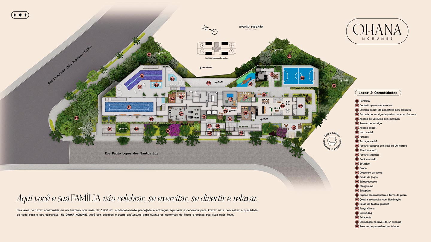 Uma área de lazer construída em um terreno com mais de 3.300m², cuidadosamente planejada e entregue equipada e decorada para trazer mais bem estar e qualidade de vida para o seu dia-a-dia. No Ohana Morubi você tem espaços e itens exclusivos para curtir os momentos de lazer e deixar sua vida mais leve.